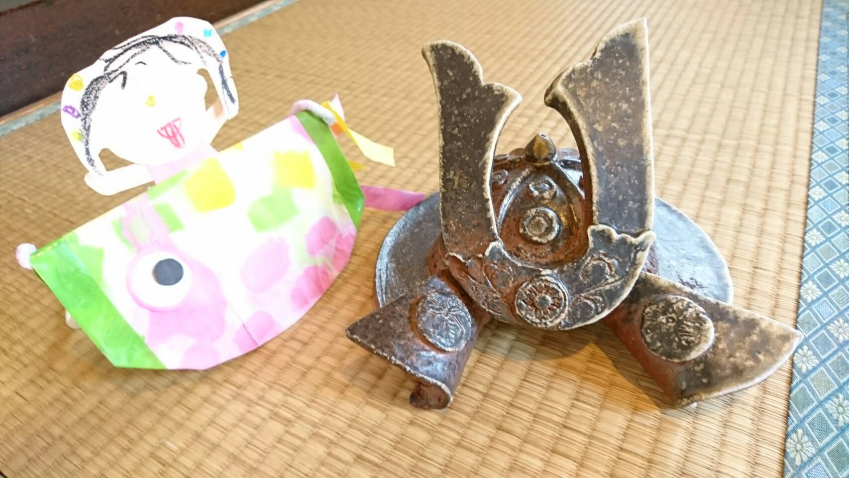 烏城焼でも兜を制作しました。世界に1つしかない、その家の家紋入りの兜です。