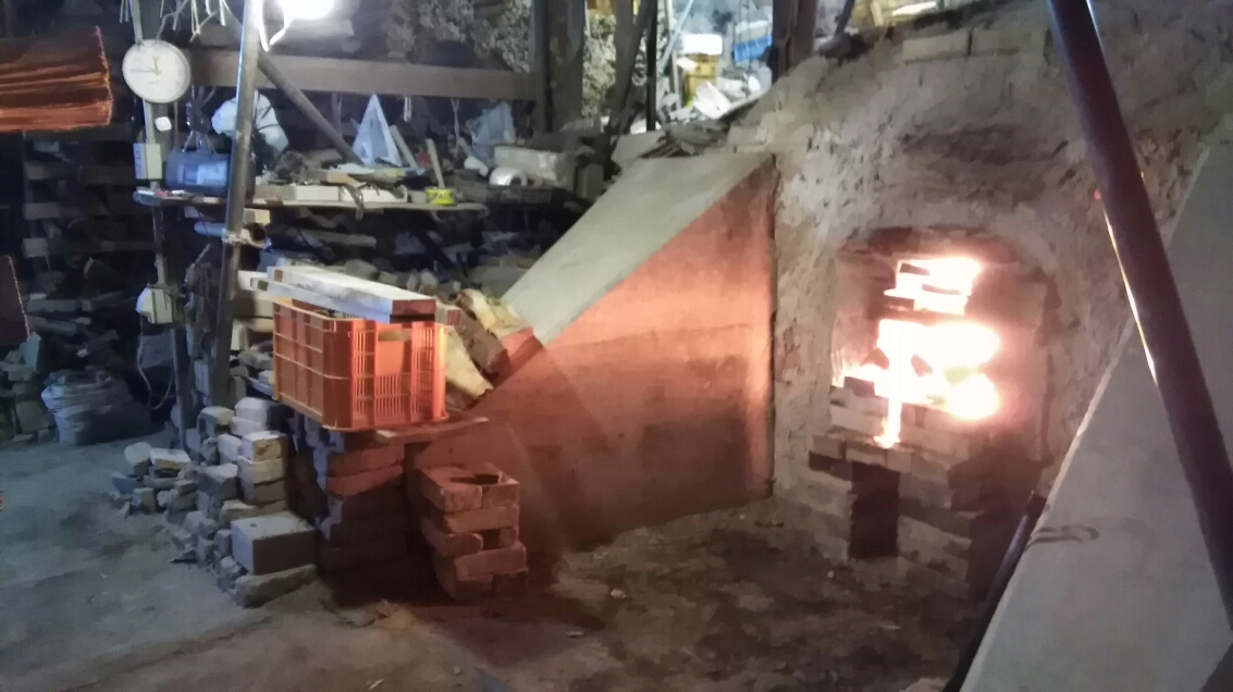 窯詰めが終わり、窯の中の水分を飛ばしています。